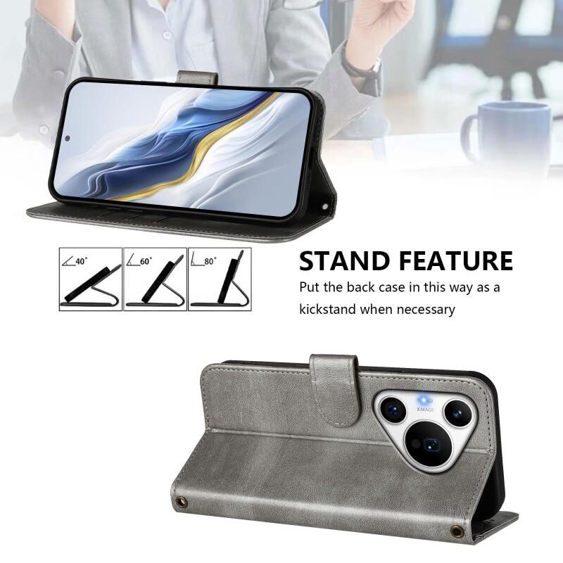 Θήκη τηλεφώνου από δέρμα retro με ενσωματωμένο μαγνητικό κούμπωμα για Huawei Pura 70 Pro / Pura 70 Pro+ (Γκρι)