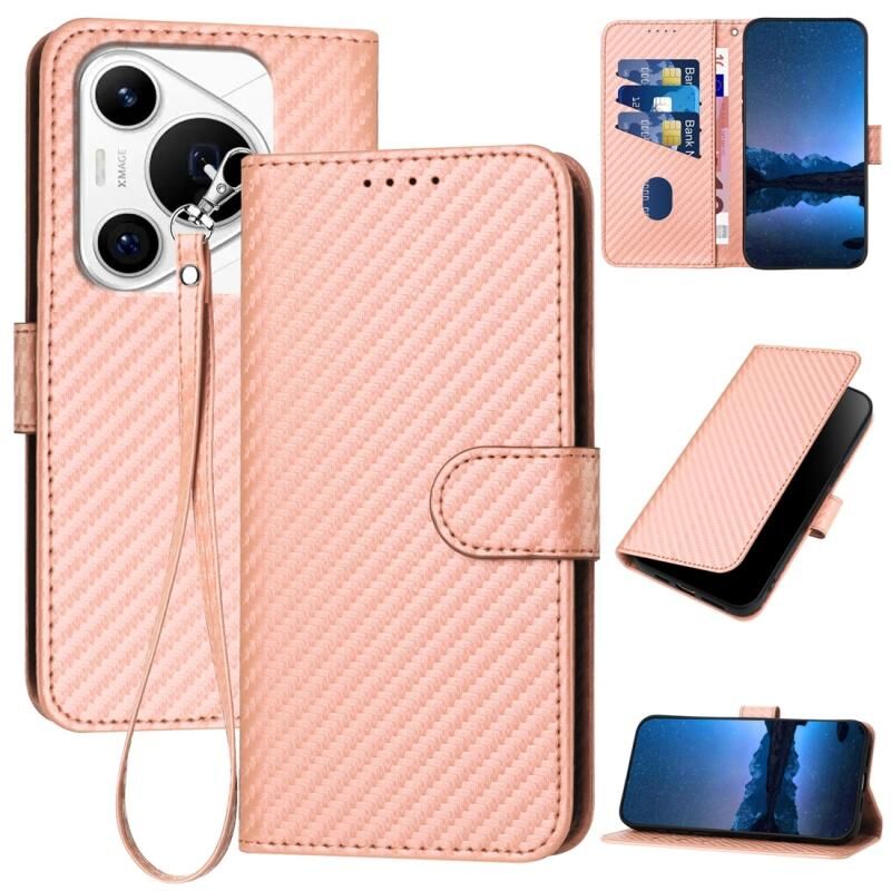 Για Huawei Pura 70 Pro / Pura 70 Ultra YX0070 Carbon Fiber Πόρπη δερμάτινη θήκη τηλεφώνου με κορδόνι (ροζ)