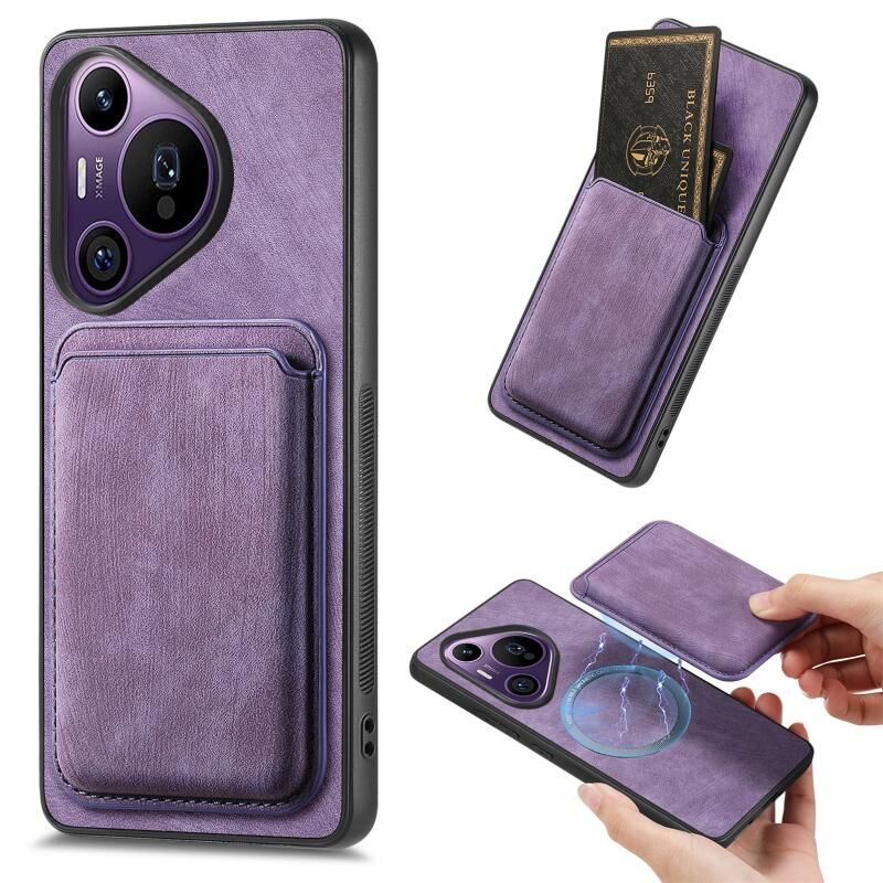 For Huawei Pura 70 Pro+ Retro Leather Card Bag Magnetic Phone Case(Purple)