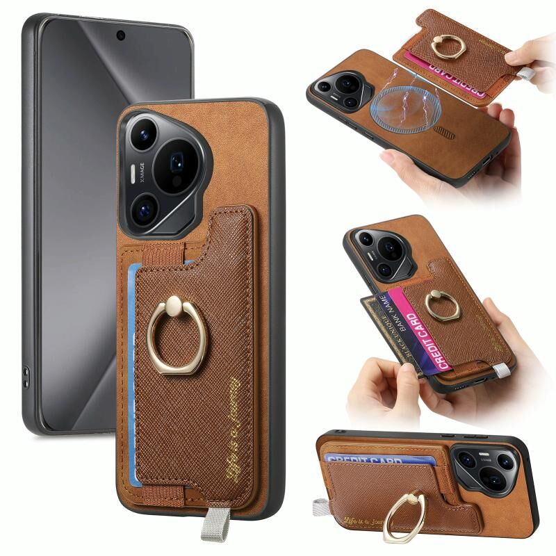 Θήκη Huawei Pura 70 Pro+ Retro Magsafe Δερμάτινη με Κάρτες & Δαχτυλίδι (Καφέ)