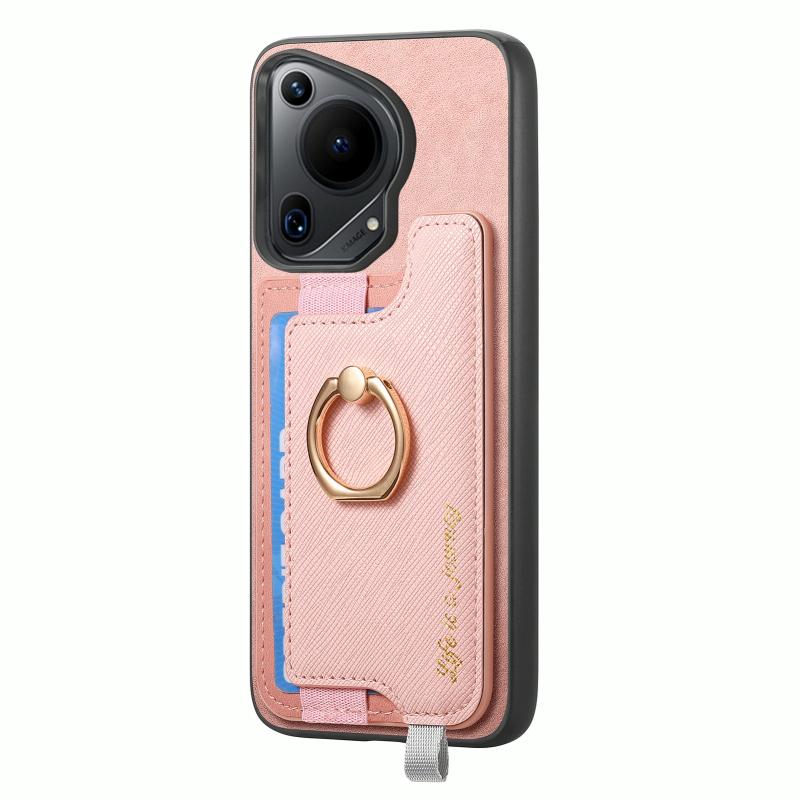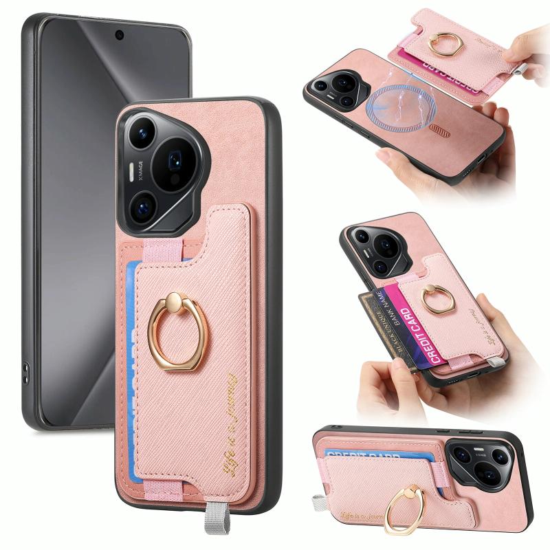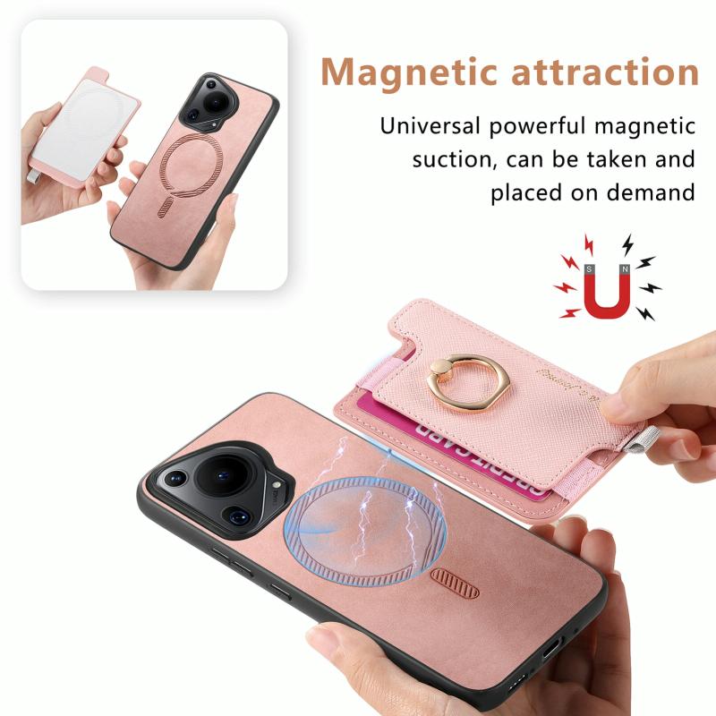Θήκη Huawei Pura 70 Pro+ Retro Magsafe Δερμάτινη με Κάρτες & Δαχτυλίδι (Ροζ)