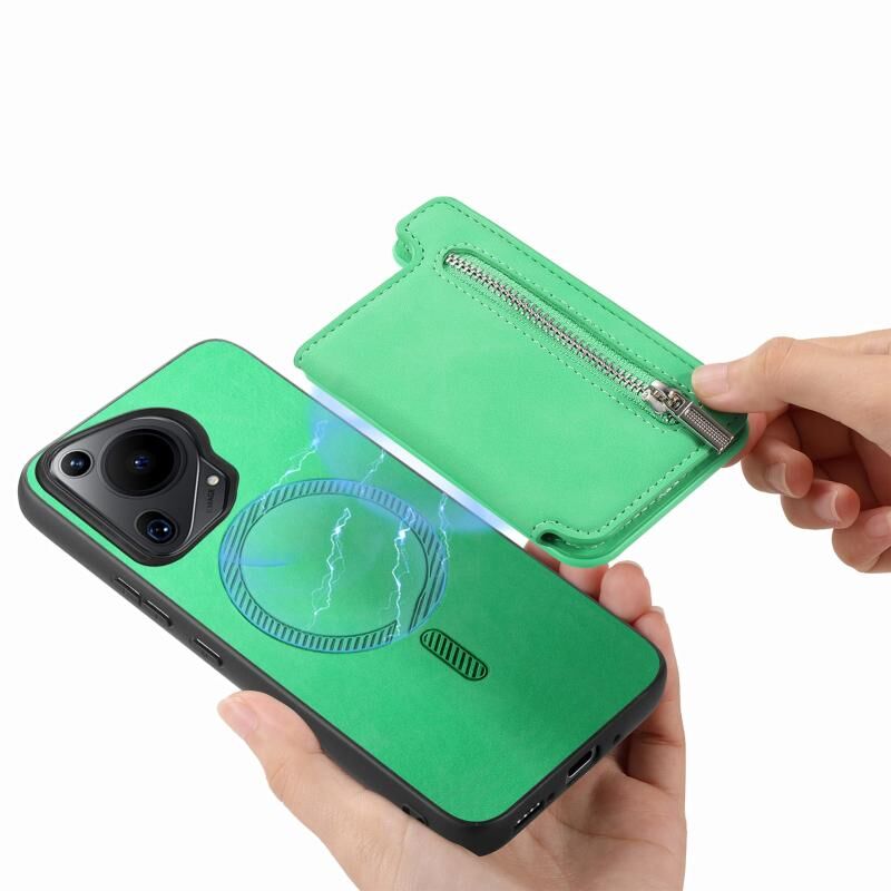 Θήκη κινητού τηλεφώνου Huawei Pura 70 Pro+ Retro MagSafe με θήκη πορτοφολιού και κάρτες, με φερμουάρ (Μπλε)