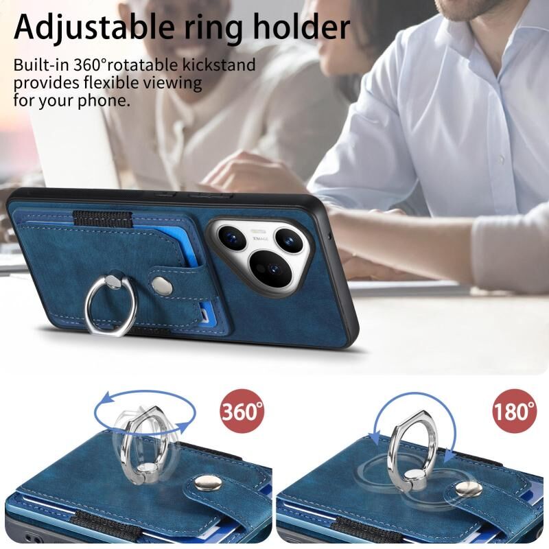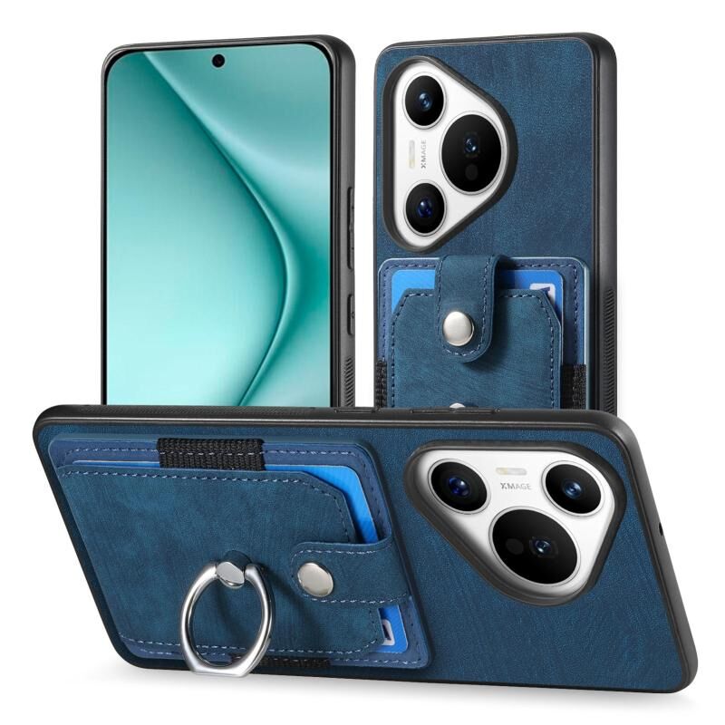 Για Huawei Pura 70 Pro + Ρετρό δέρμα-συναίσθημα δαχτυλίδι κάρτα πορτοφόλι τηλέφωνο υπόθεση (Μπλε)