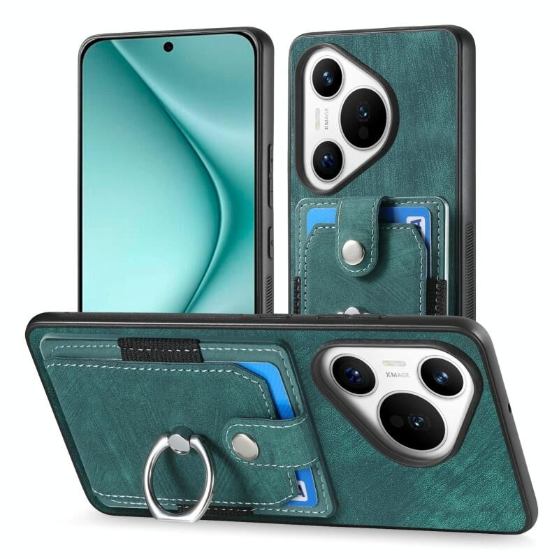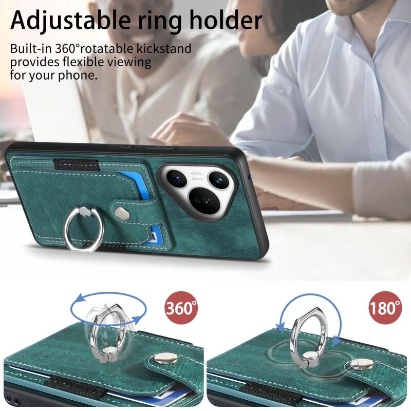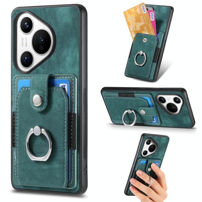 Για Huawei Pura 70 Pro Ρετρό δέρμα-συναίσθημα δαχτυλίδι κάρτα πορτοφόλι τηλέφωνο υπόθεση (πράσινο)