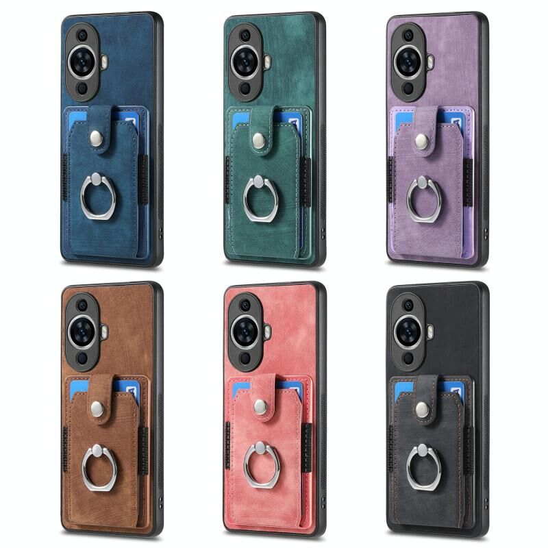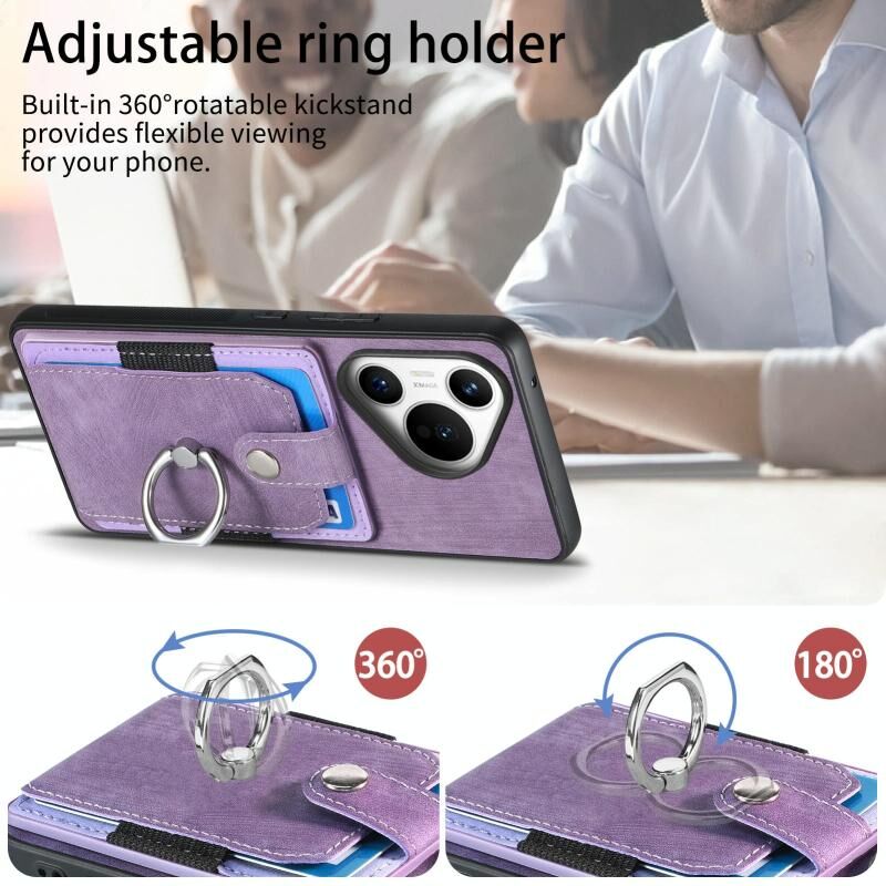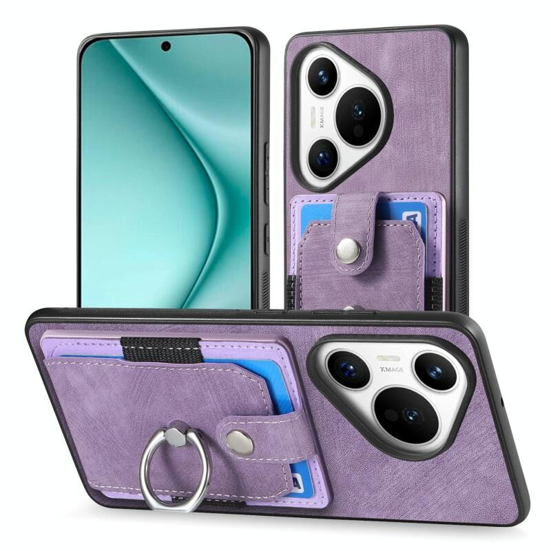 Για Huawei Pura 70 Pro + Ρετρό δέρμα-συναίσθημα δαχτυλίδι κάρτα πορτοφόλι υπόθεση τηλεφώνου (Μωβ)