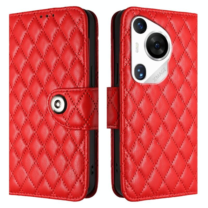 Για το Huawei Pura 70 Pro Rhombic Texture Flip δερμάτινη θήκη τηλεφώνου με κορδόνι (κόκκινο)