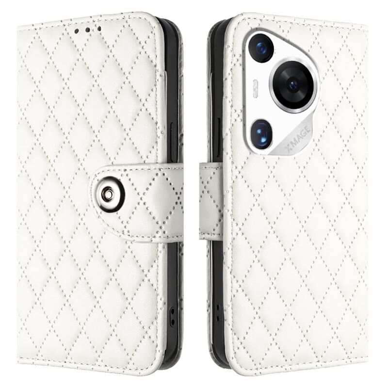 Για το Huawei Pura 70 Pro Rhombic Texture Flip δερμάτινη θήκη τηλεφώνου με κορδόνι (λευκό)