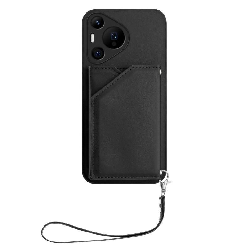 Θήκη τηλεφώνου Huawei Pura 70 Pro με αίσθηση δέρματος, τέσσερις θήκες για κάρτες και λουρί καρπού (Ροζ)