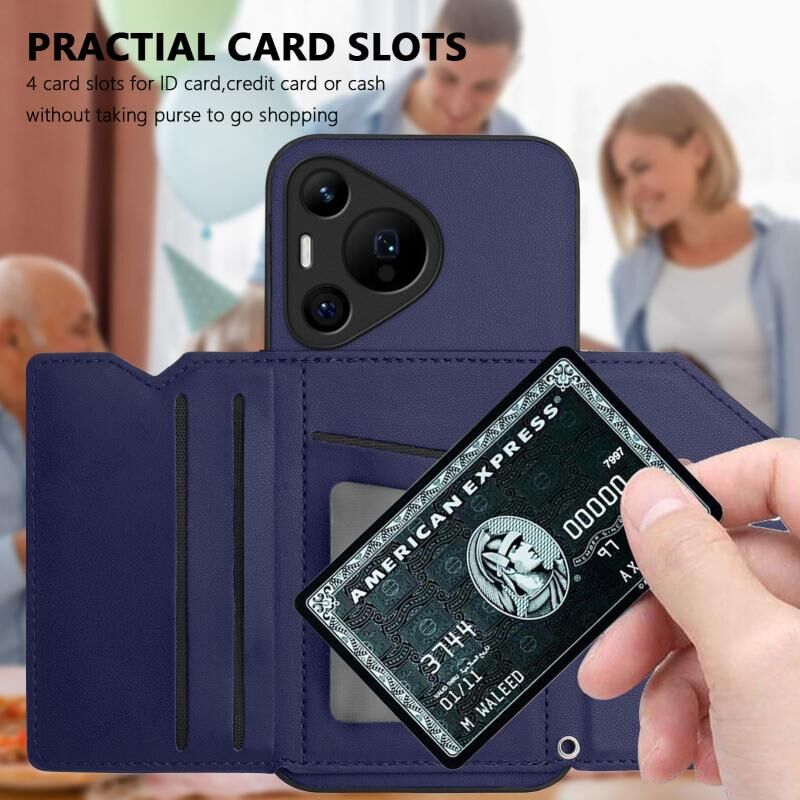 Θήκη τηλεφώνου Huawei Pura 70 Pro με αίσθηση δέρματος, τέσσερις θήκες για κάρτες και λουρί καρπού (Ροζ)