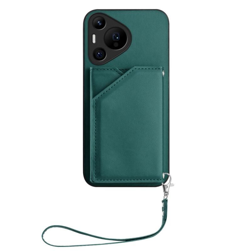 Θήκη τηλεφώνου Huawei Pura 70 Pro με αίσθηση δέρματος, τέσσερις θήκες για κάρτες και λουρί καρπού (Ροζ)