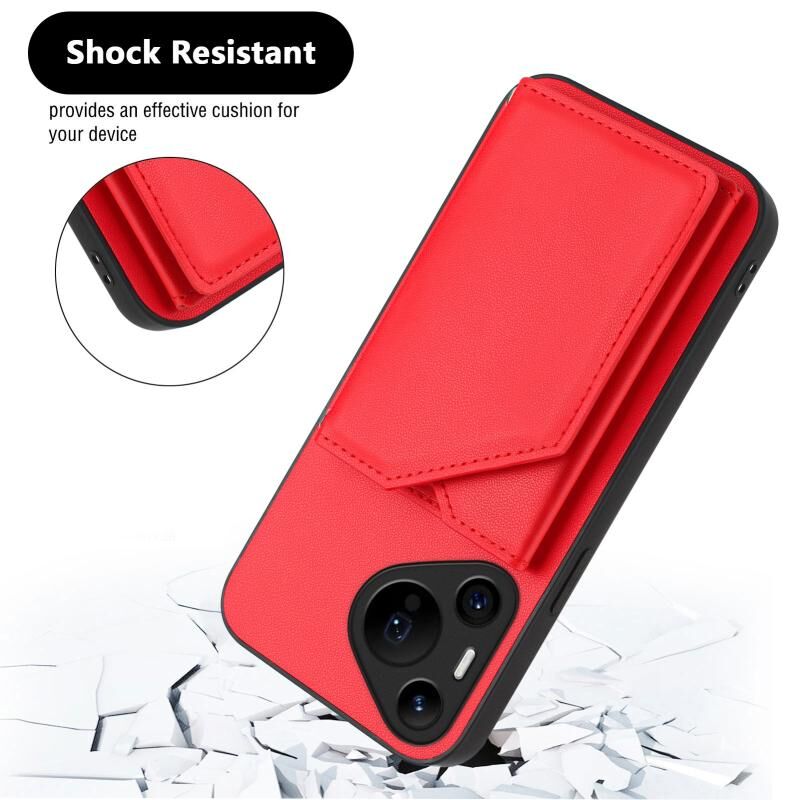 Θήκη τηλεφώνου Huawei Pura 70 Pro με αίσθηση δέρματος, τέσσερις θήκες για κάρτες και λουρί καρπού (Ροζ)