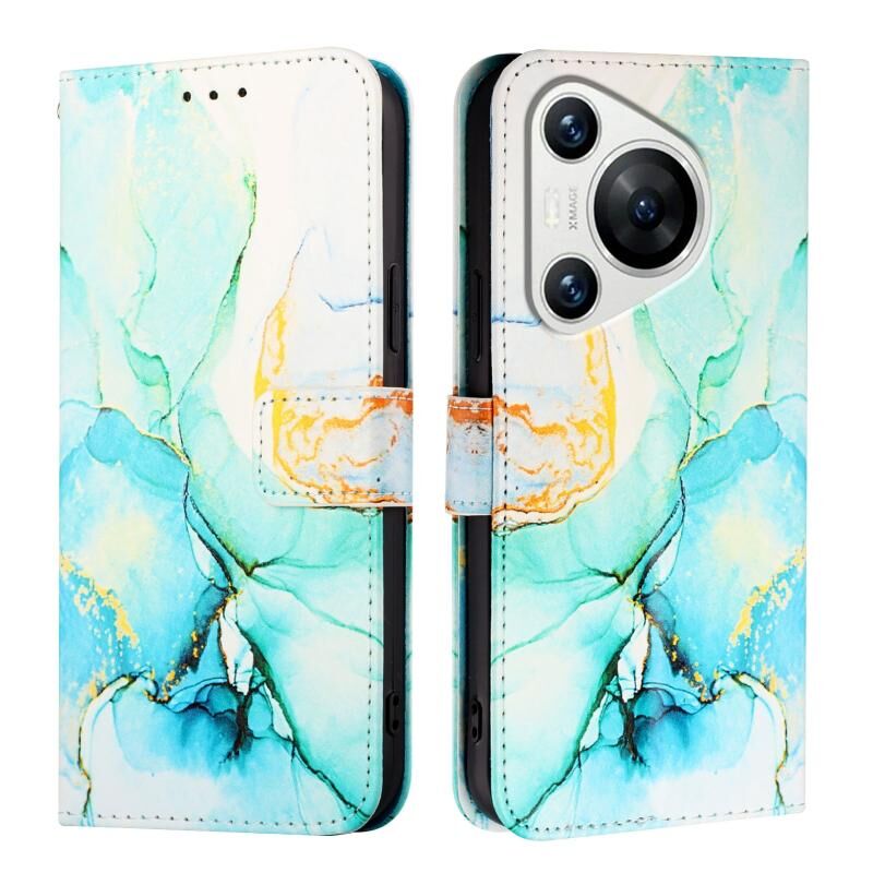 Θήκη τηλεφώνου Huawei Pura 70 PT003 από δέρμα με σχέδιο μάρμαρου και πτυσσόμενο μηχανισμό (Λευκό-Μωβ)
