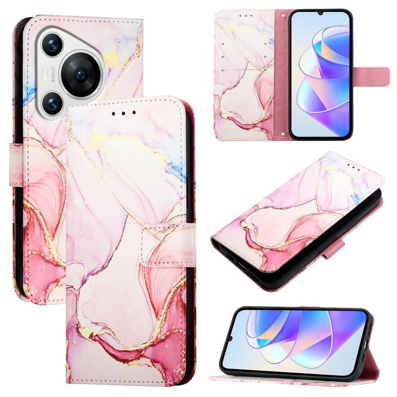 For Huawei Pura 70 PT003 Marble Pattern Flip Leather Phone Case(Rose Gold)