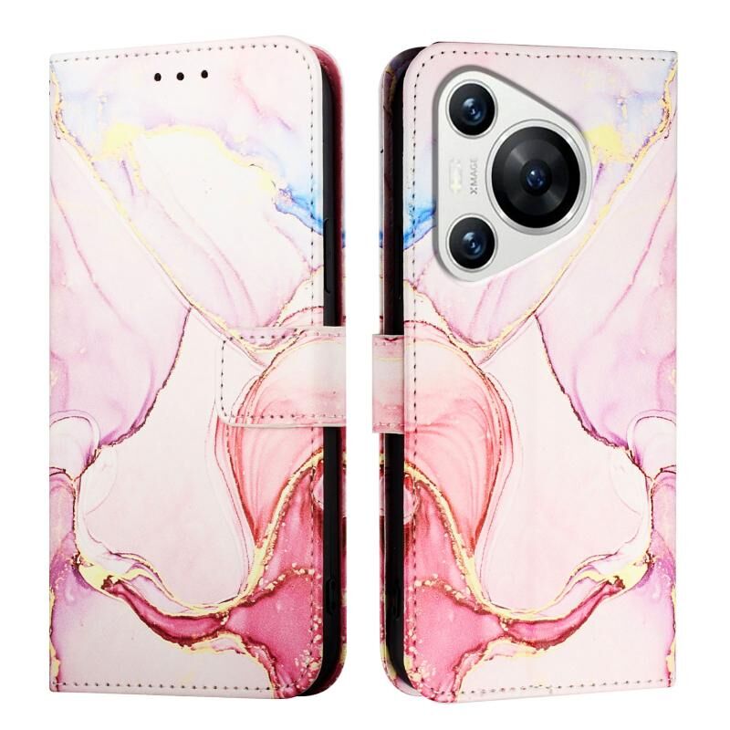 Θήκη τηλεφώνου Huawei Pura 70 PT003 από δέρμα με σχέδιο μάρμαρου και πτυσσόμενο μηχανισμό (Ροζ χρυσός)