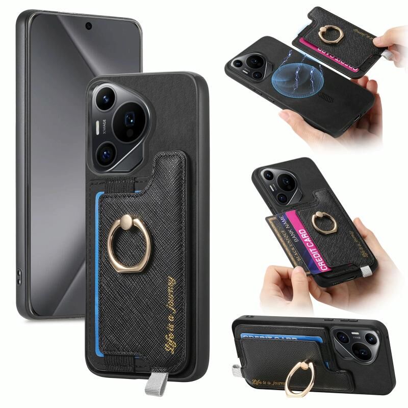 Θήκη Huawei Pura 70 Retro Magsafe Δερμάτινη με Κάρτες & Στήριξη (Μαύρο)