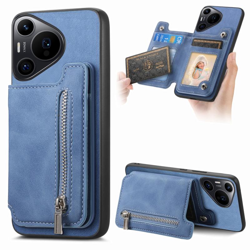 Θήκη Huawei Pura 70 Retro MagSafe με Δερμάτινο Πορτοφόλι & Κάρτες (Μπλε)
