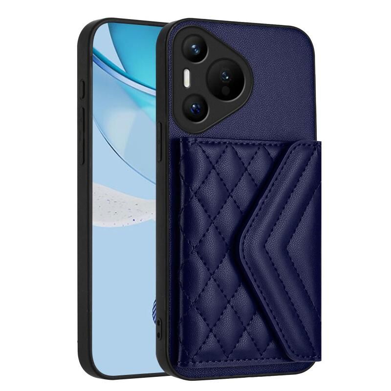 Για Huawei Pura 70 Rhombic υφή κάρτα τσάντα RFID υπόθεση τηλεφώνου με μακρύ κορδόνι (Μπλε)
