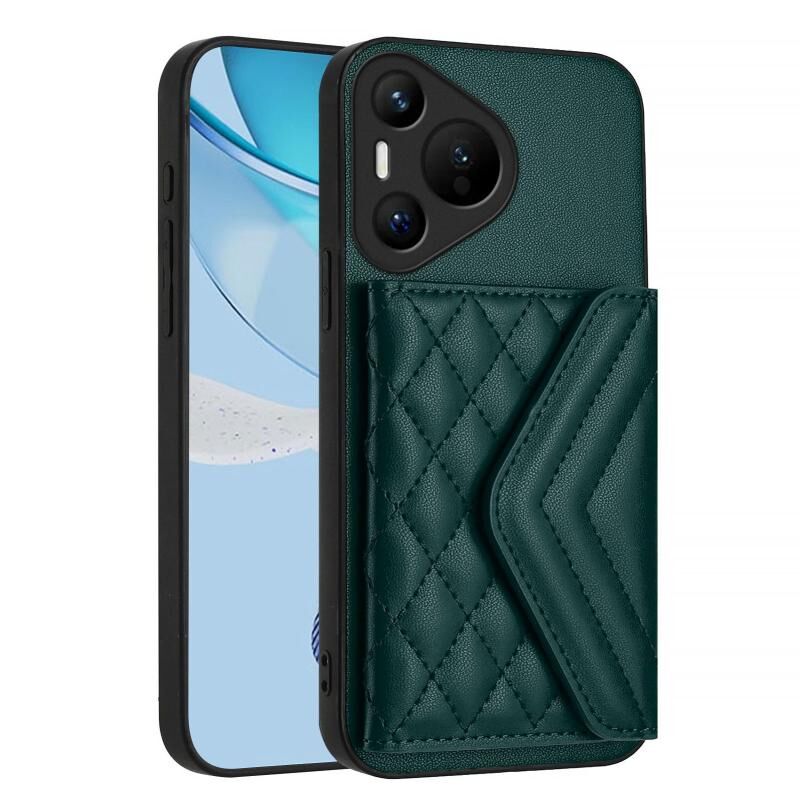 Για Huawei Pura 70 Rhombic υφή κάρτα τσάντα RFID υπόθεση τηλεφώνου με μακρύ κορδόνι (Πράσινο)