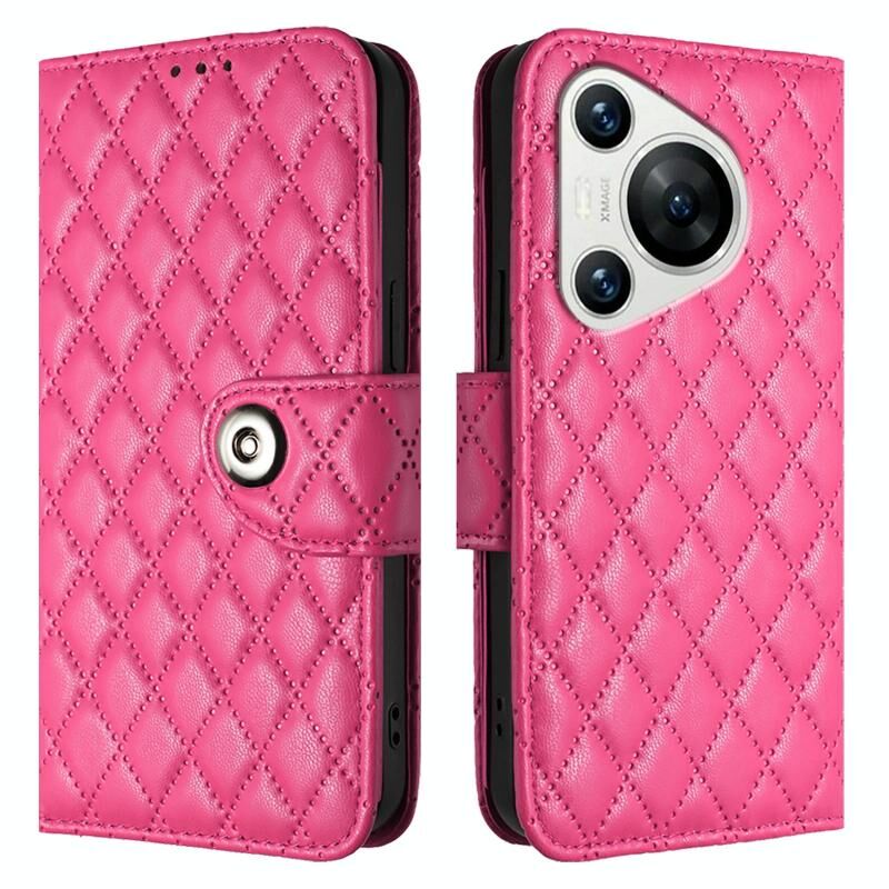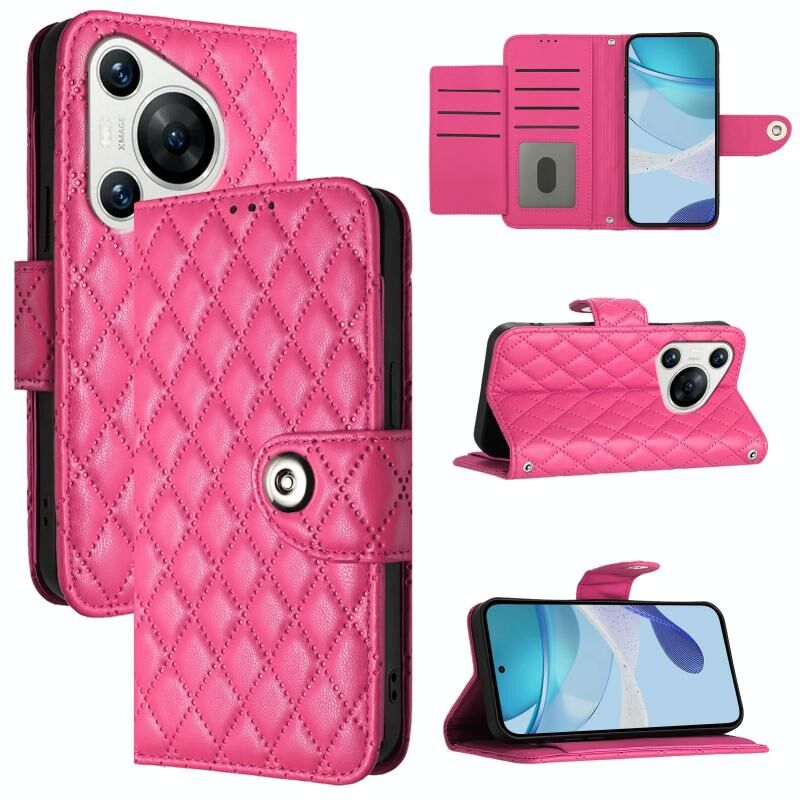 Για το Huawei Pura 70 Rhombic υφή Flip δερμάτινη θήκη τηλεφώνου με κορδόνι (Rose Red)