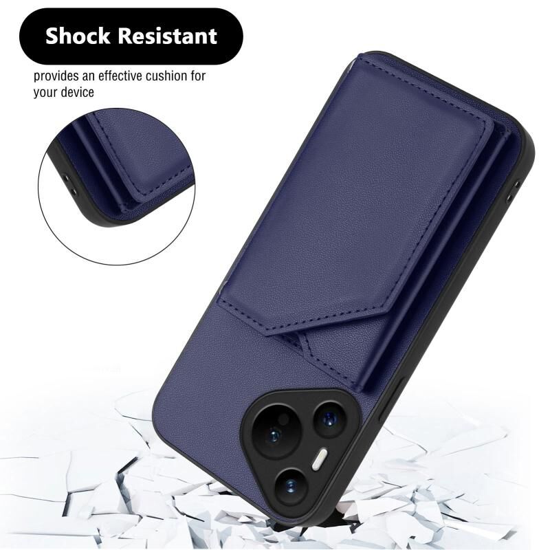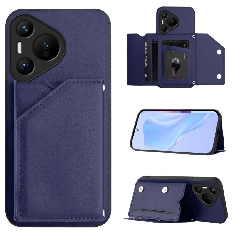 Θήκη τηλεφώνου για Huawei Pura 70 με αίσθηση δέρματος, τέσσερις θήκες καρτών και λουρί καρπού (Μπλε)