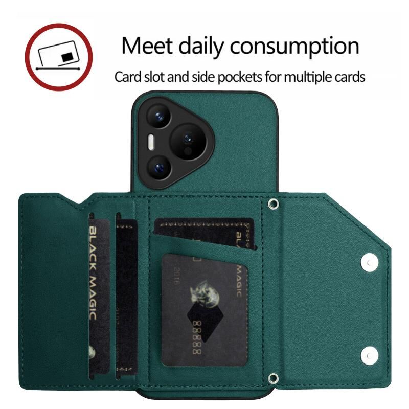 Θήκη τηλεφώνου για Huawei Pura 70 με αίσθηση δέρματος, τέσσερις θήκες καρτών και λουρί καρπού (πράσινο)