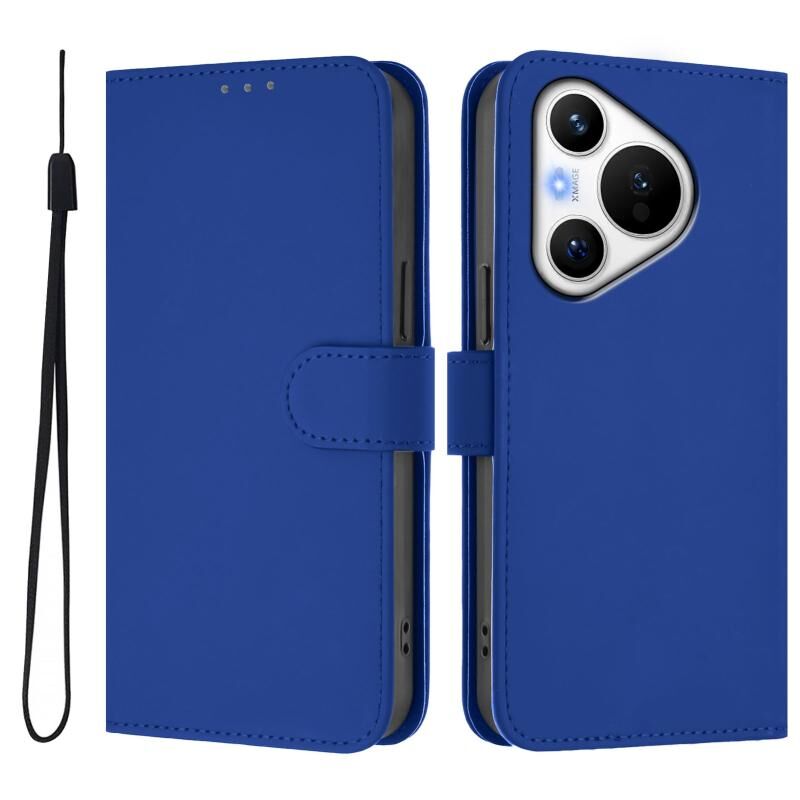 Για το Huawei Pura 70 δέρμα αίσθηση στερεό χρώμα δερμάτινη θήκη τηλεφώνου με κορδόνι (σκούρο μπλε)