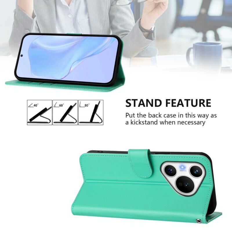 Για το Huawei Pura 70 δέρμα αίσθηση στερεό χρώμα δερμάτινη θήκη τηλεφώνου με κορδόνι (πράσινο)