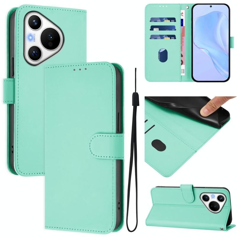 Για το Huawei Pura 70 δέρμα αίσθηση στερεό χρώμα δερμάτινη θήκη τηλεφώνου με κορδόνι (πράσινο μέντα)