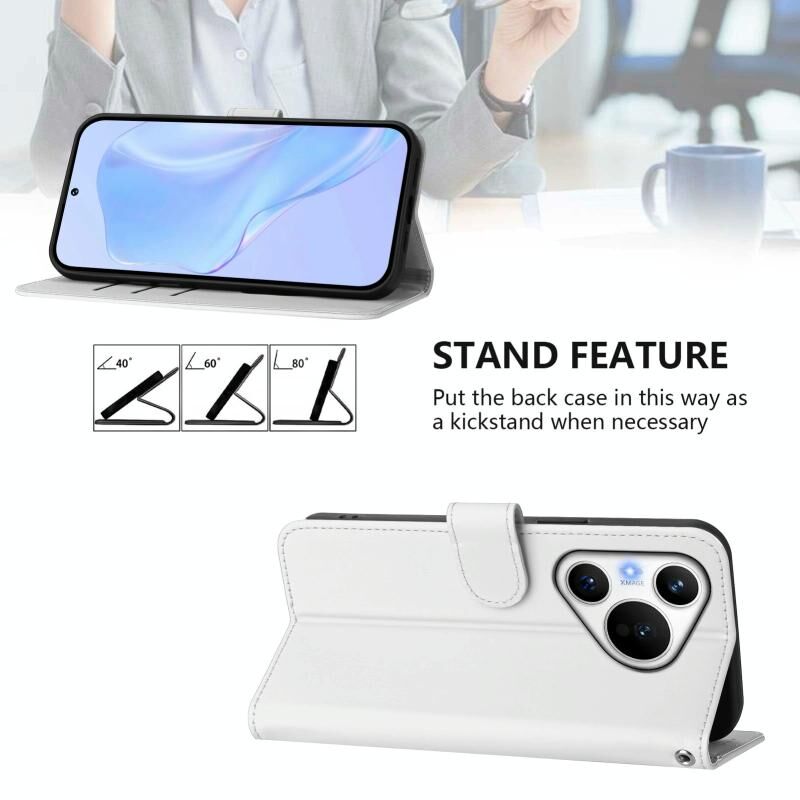 Για το Huawei Pura 70 δέρμα αίσθηση στερεό χρώμα δέρμα τηλέφωνο υπόθεση με κορδόνι (λευκό)
