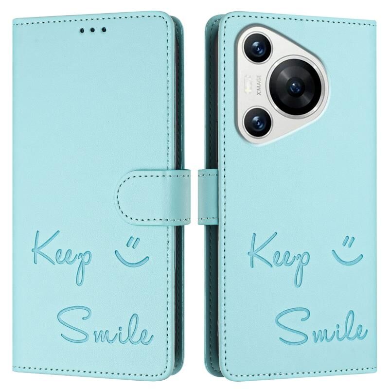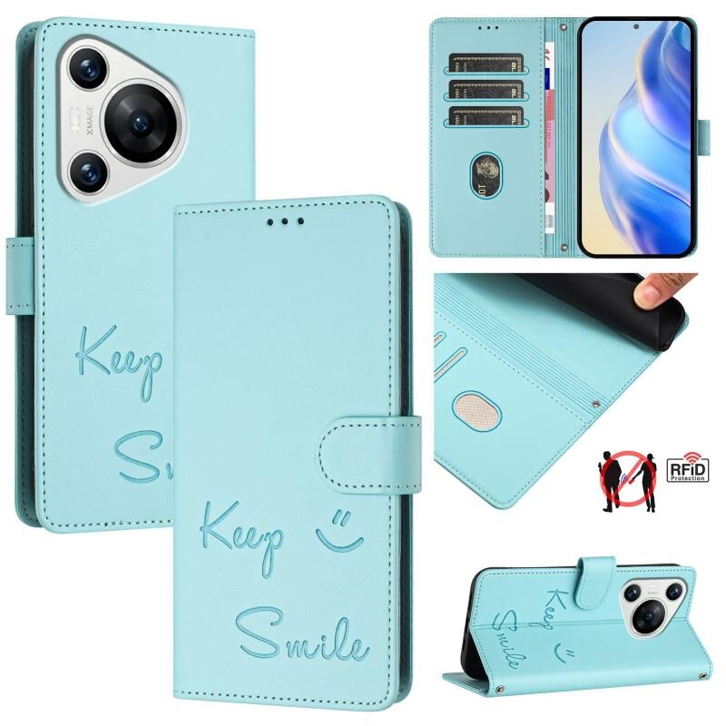Για Huawei Pura 70 Χαμόγελο ανάγλυφο RFID δερμάτινη θήκη τηλεφώνου (Πράσινο μέντα)