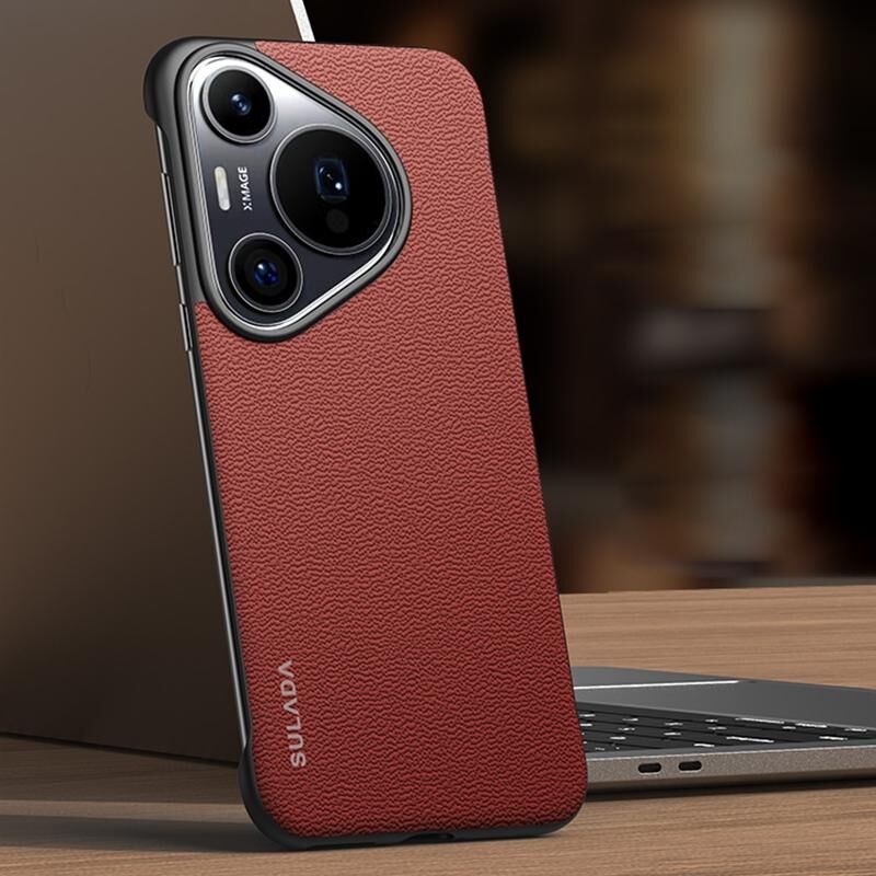 Θήκη κινητού Huawei Pura 70 SULADA, χωρίς πλαίσιο, από δέρμα αγελάδας ανώτερης ποιότητας + PC (Μαύρο) (Κόκκινο)