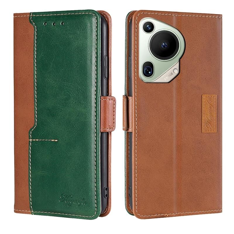 Για Huawei Pura 70 Ultra 5G αντίθεση χρώματος πλευρά πόρπη δερμάτινη θήκη τηλεφώνου υπόθεση (Ανοιχτό καφέ και πράσινο)