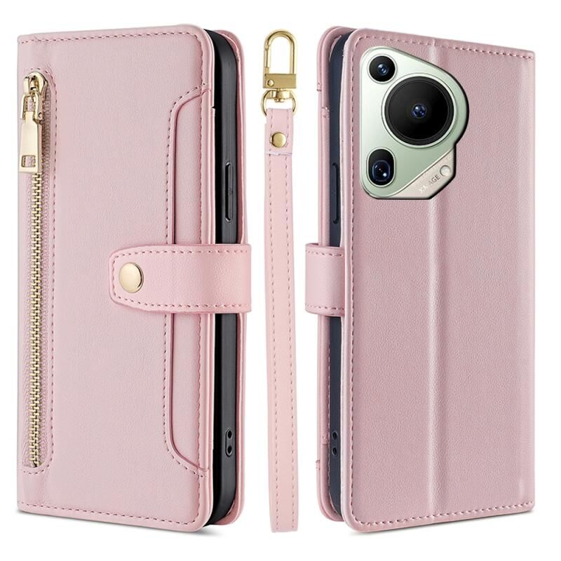 Για Huawei Pura 70 Ultra 5G Πρόβατα Υφή Cross-body φερμουάρ πορτοφόλι δερμάτινη θήκη τηλεφώνου (ροζ)