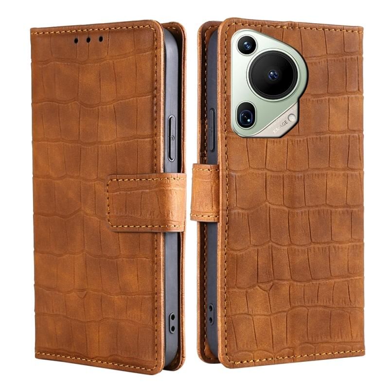 Θήκη τηλεφώνου Huawei Pura 70 Ultra 5G από δέρμα με μαγνητικό κούμπωμα και υφή κροκόδειλου (Καφέ)