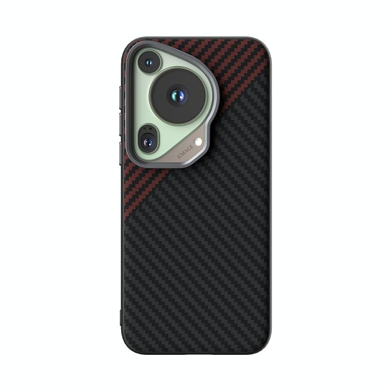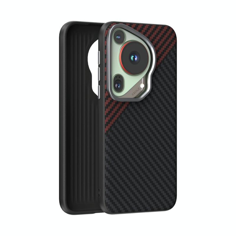 For Huawei Pura 70 Ultra ABEEL C Carbon Fiber Series 6D Micro Relief MagSafe Phone Case(Black Red)