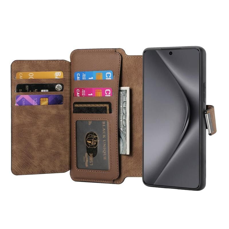 2. Λειτουργία πορτοφολιού με φερμουάρ: Η δερμάτινη θήκη είναι εξοπλισμένη με πορτοφόλι με φερμουάρ και υποδοχές για κάρτες για την τοποθέτηση καρτών και μικρού ποσού μετρητών.