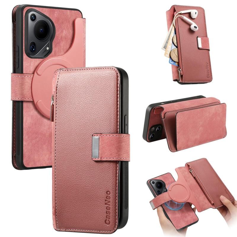 For Huawei Pura 70 Ultra CaseNeo MagSafe RFID Anti-theft Zipper Wallet Retro Leather Phone Case(Pink) (CaseNeo)