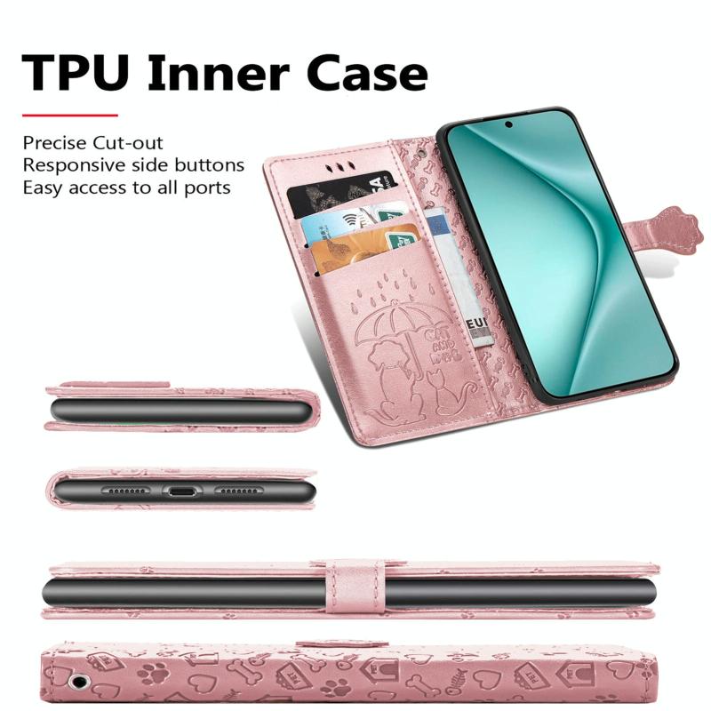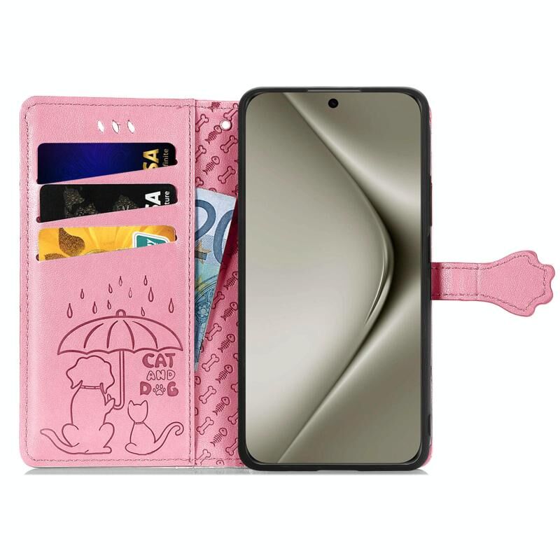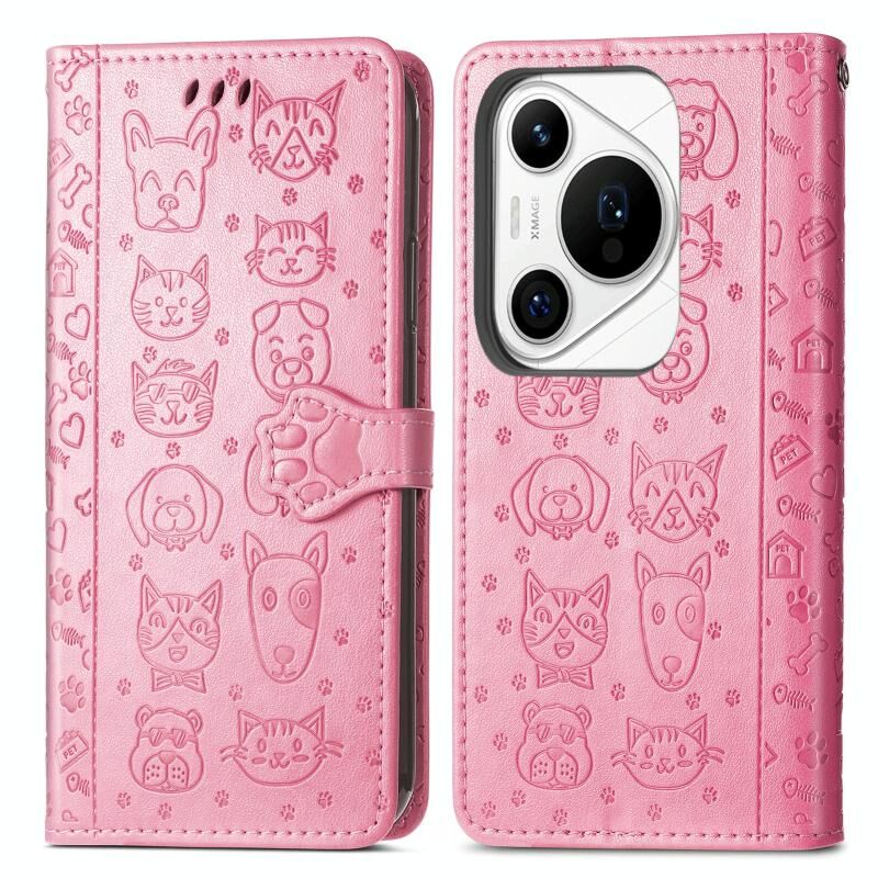 Θήκη Huawei Pura 70 Ultra Δερμάτινη με Χαρακτά Γάτας & Σκύλου (Ροζ)