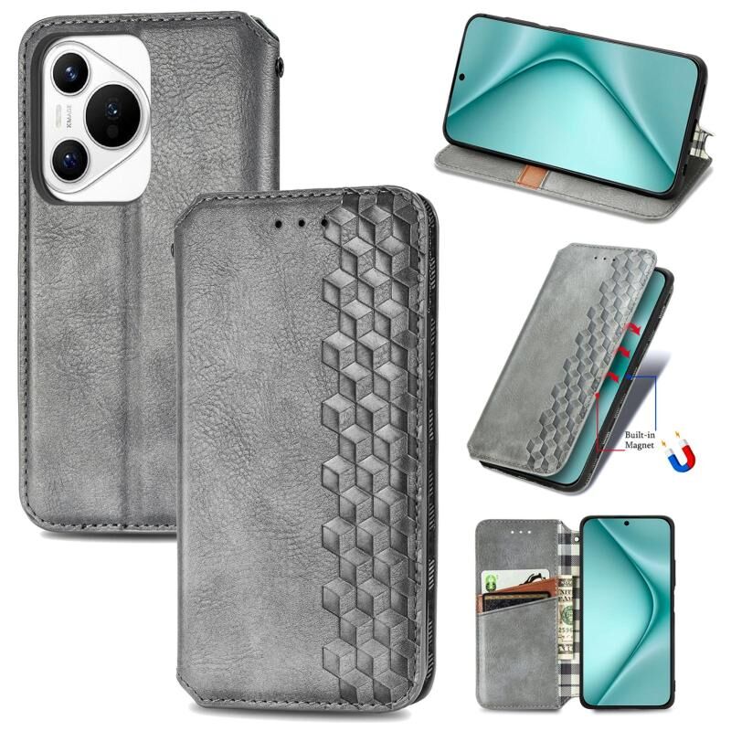 For Huawei Pura 70 Ultra Cubic Grid Pressed Magnetic Leather Phone Case(Gray)