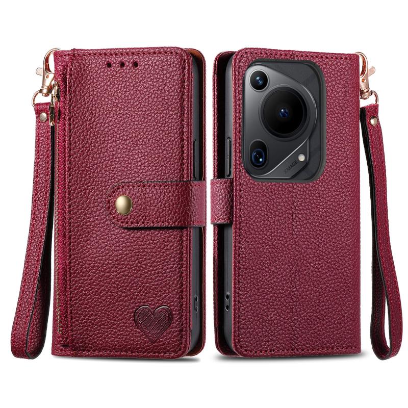 For Huawei Pura 70 Ultra Love Zipper Lanyard Leather Phone Case(Red)