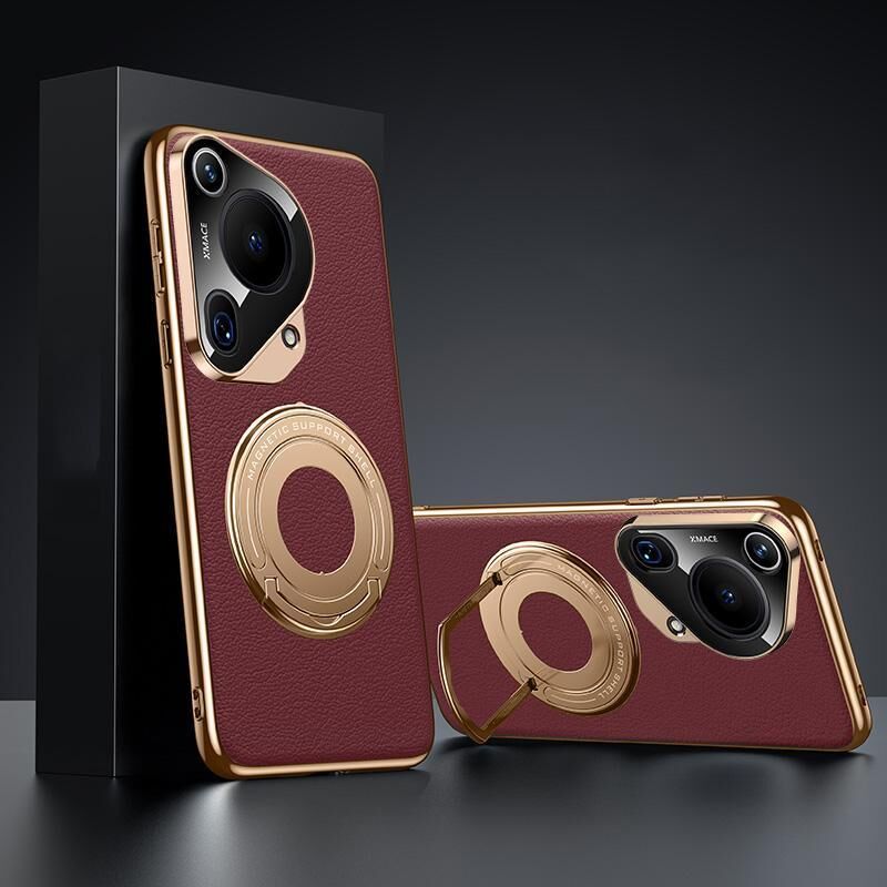 For Huawei Pura 70 Ultra Plain Leather Hydric Metal Holder MagSafe Phone Case(Red)