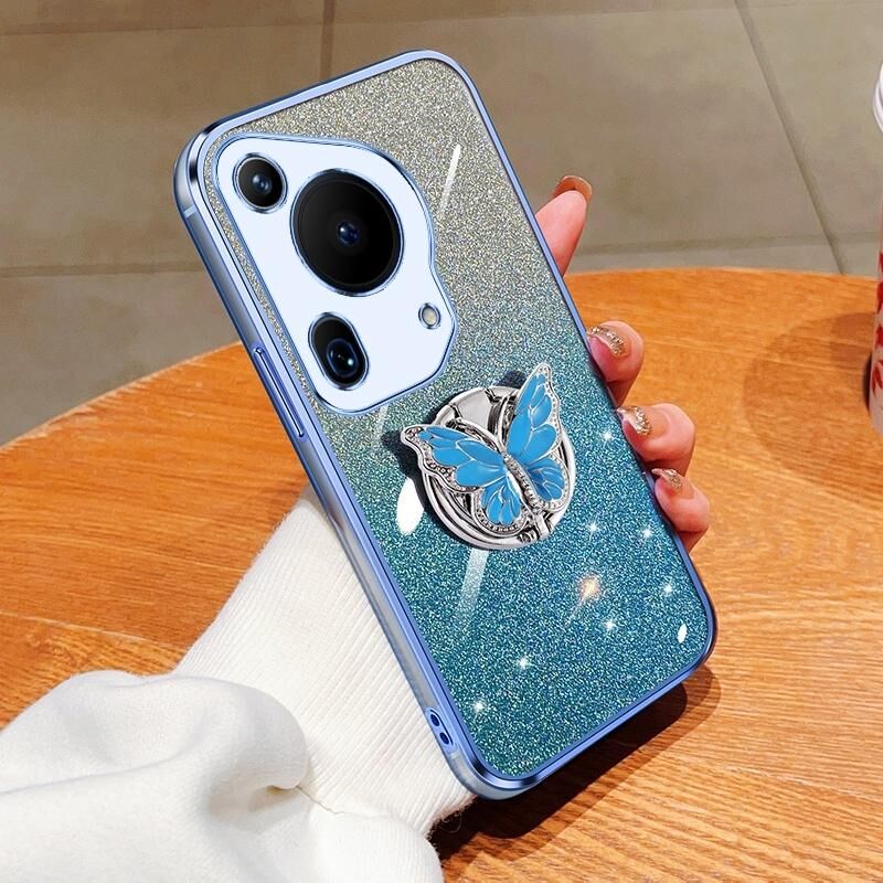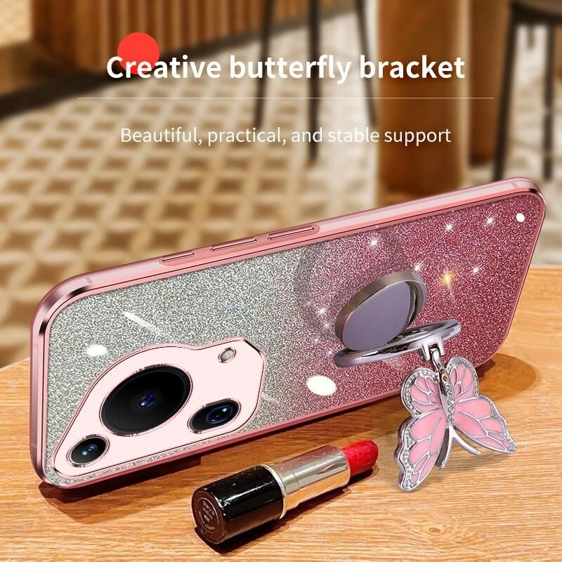 Θήκη κινητού τηλεφώνου Huawei Pura 70 Ultra με επικάλυψη, διαβαθμισμένη λάμψη, σχέδιο πεταλούδας, TPU (Ροζ)