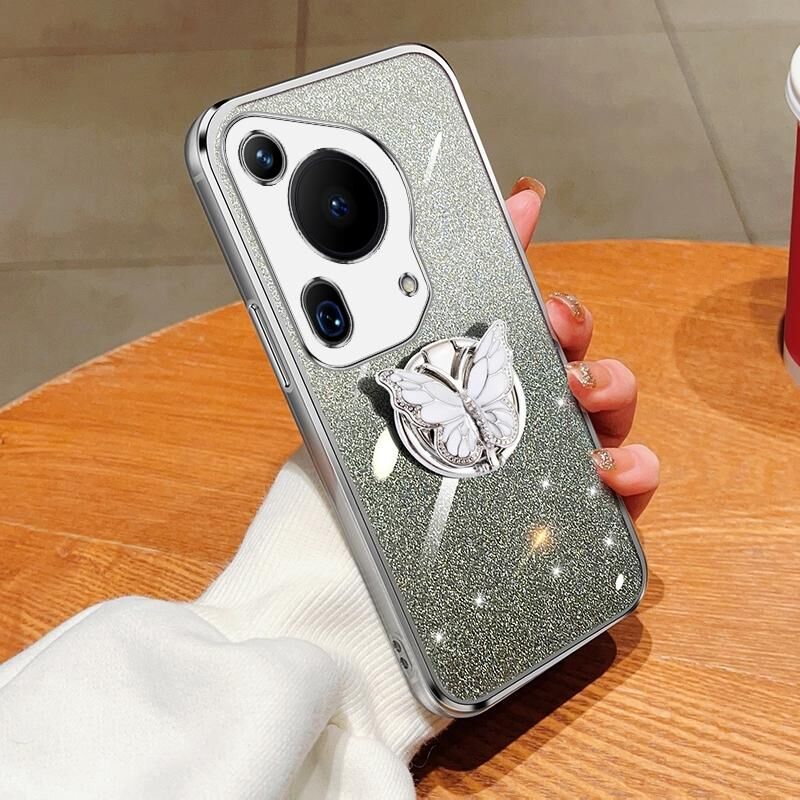 Θήκη κινητού τηλεφώνου Huawei Pura 70 Ultra με επικάλυψη, διαβαθμισμένη λάμψη, σχέδιο πεταλούδας, TPU (Ροζ)