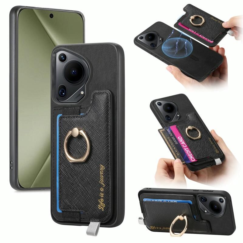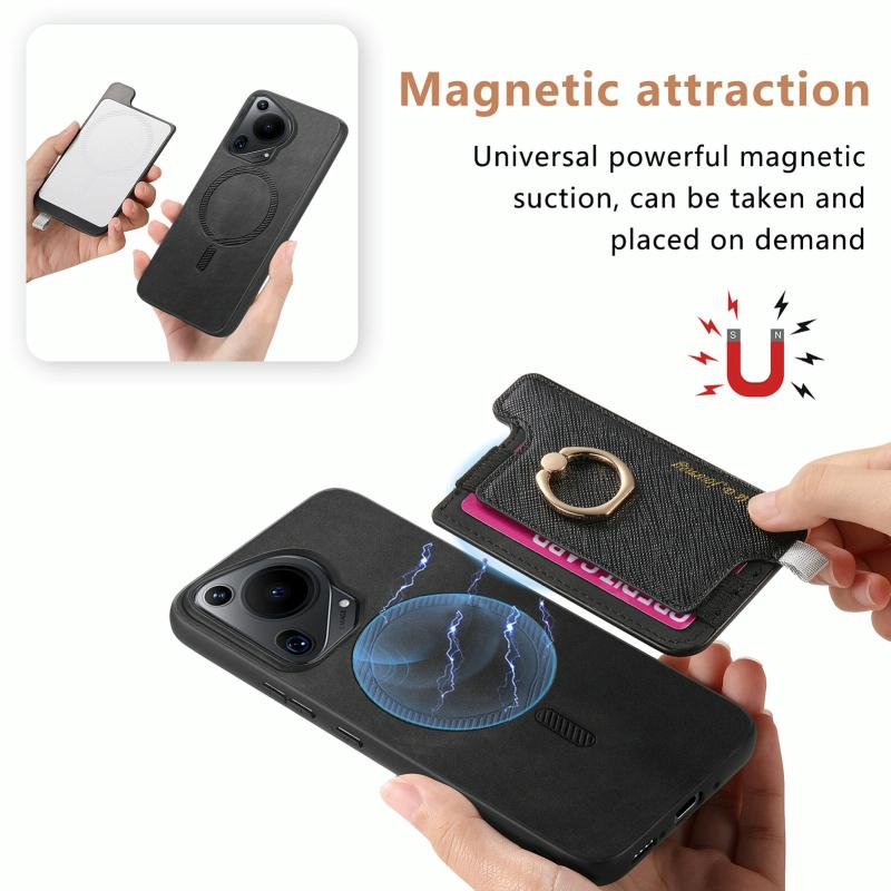 Θήκη Huawei Pura 70 Ultra Retro Magsafe Δερμάτινη με Κάρτες & Δαχτυλίδι (Μαύρο)