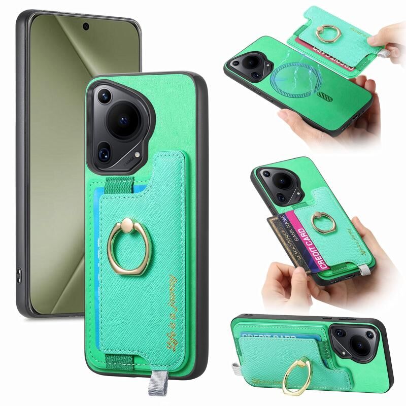 Θήκη Huawei Pura 70 Ultra Retro Magsafe Δερμάτινη με Κάρτες & Δαχτυλίδι (Πράσινο)
