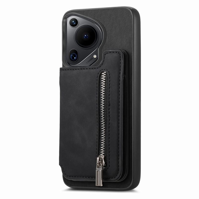 For Huawei Pura 70 Ultra Retro MagSafe Zipper Wallet Card Bag Back Phone Case(Black)