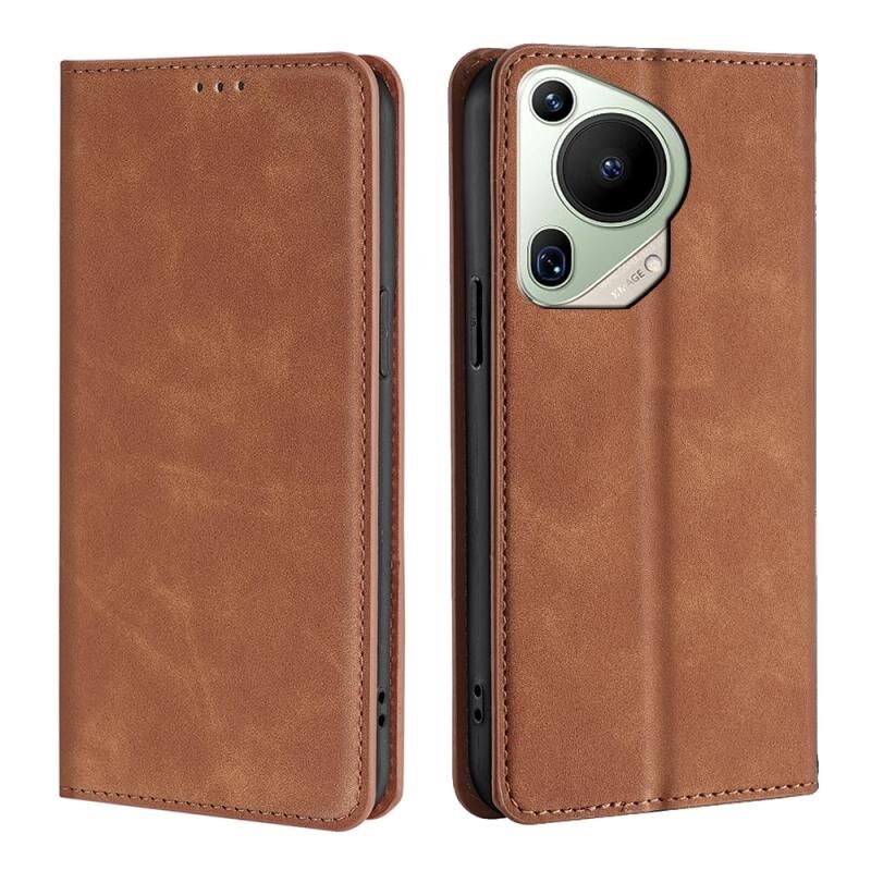 Για Huawei Pura 70 Ultra Skin Feel μαγνητική δερμάτινη θήκη τηλεφώνου (Ανοιχτό καφέ)