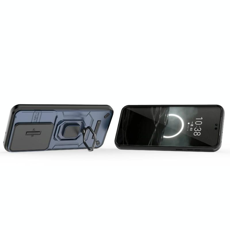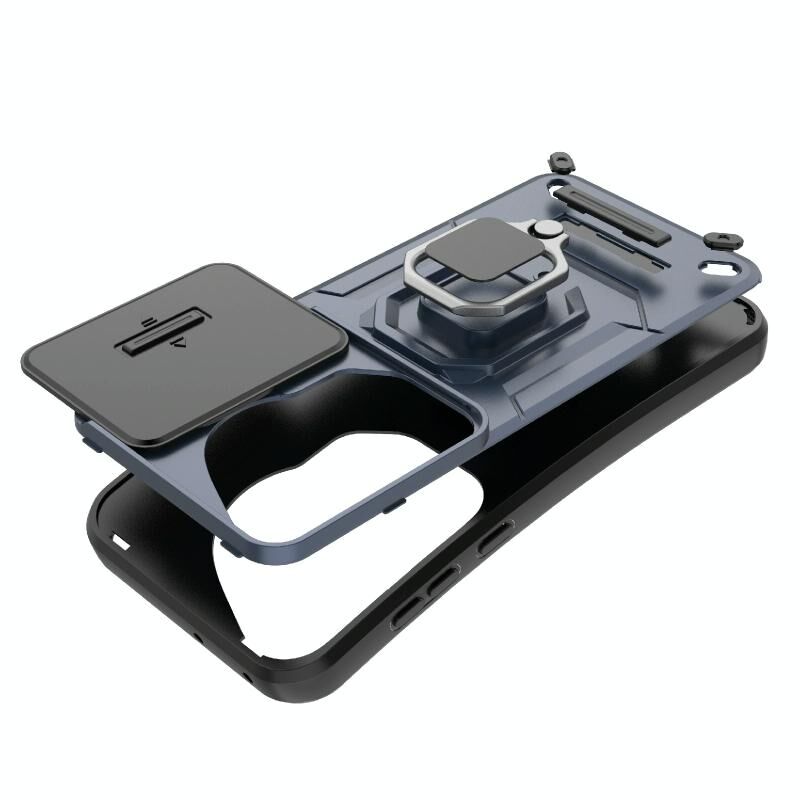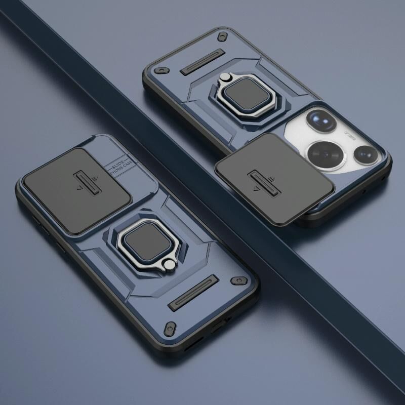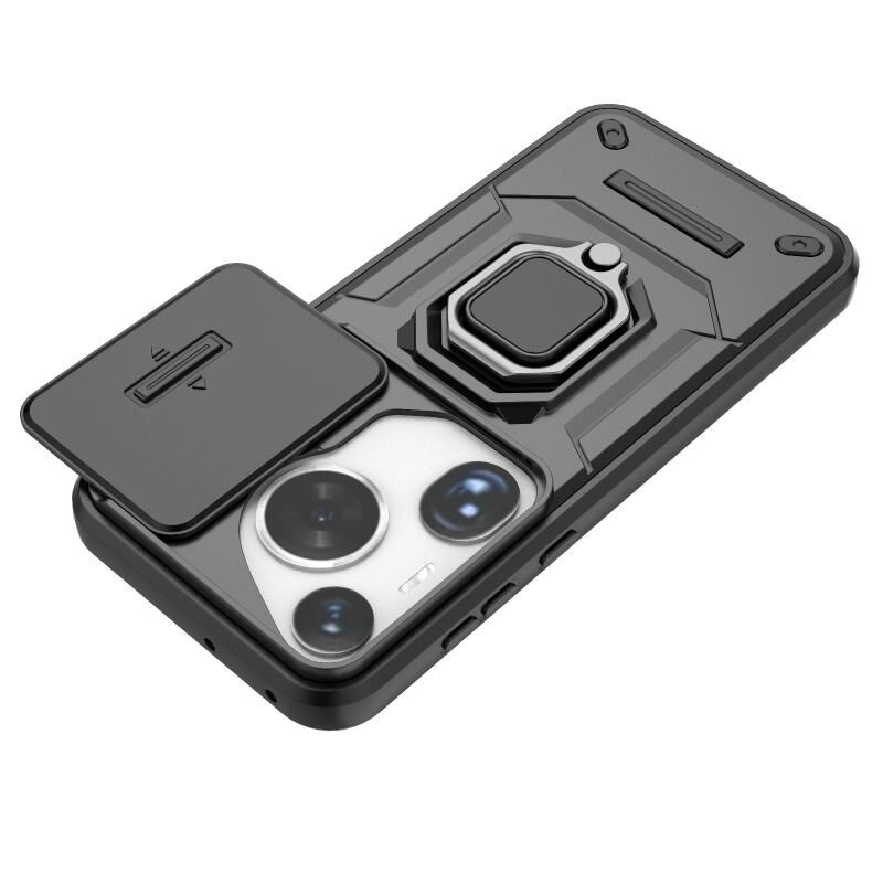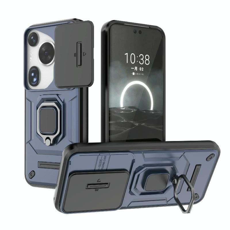 Θήκη κινητού Huawei Pura 70 Ultra με ολισθαίνουσα προστασία κάμερας Camshield, κατασκευασμένη από TPU + PC, ανθεκτική σε κρούσεις, με βάση στήριξης (Μαύρο)