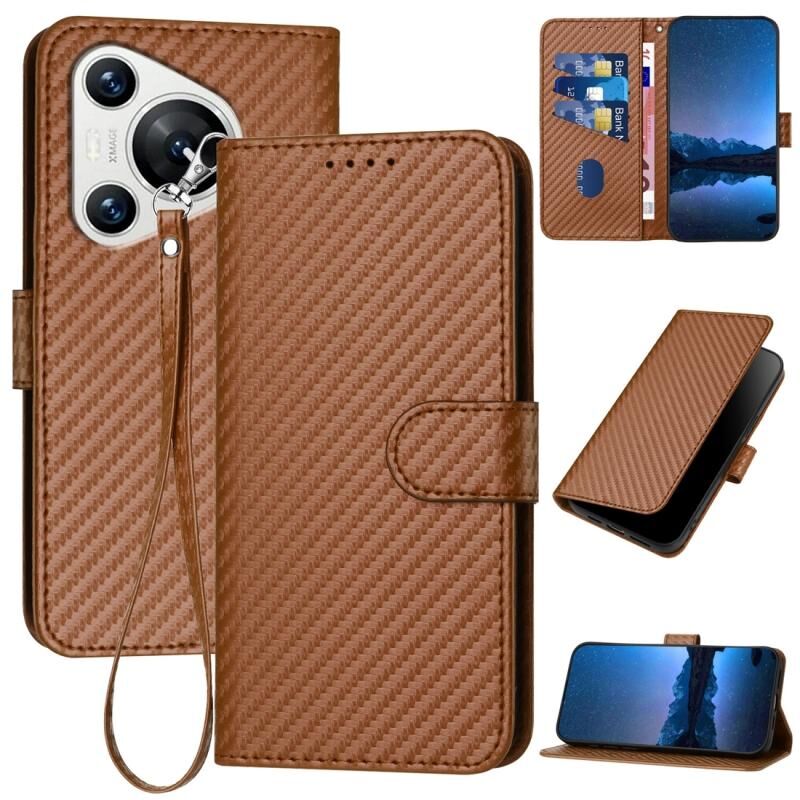 Για Huawei Pura 70 YX0070 Carbon Fiber πόρπη δερμάτινη θήκη τηλεφώνου με κορδόνι (καφέ)