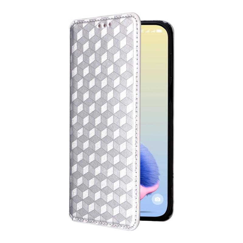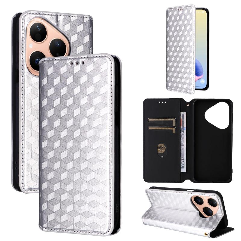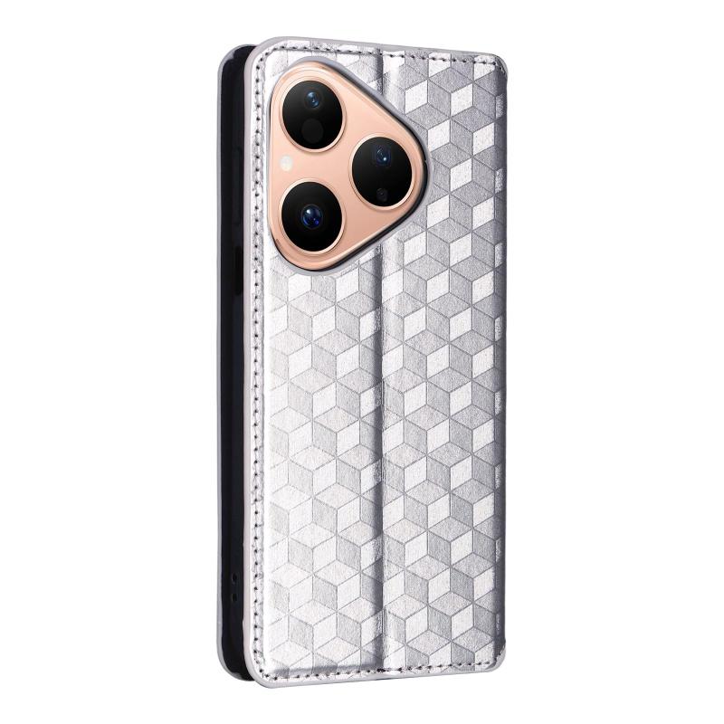 Θήκη Huawei Pura 80 5G Δερμάτινη Flip με Υφή Cubic Grid (Ασημί)